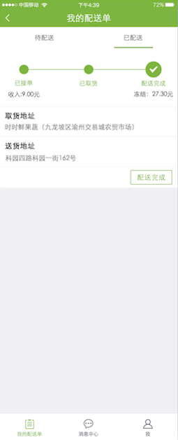 2. 配送端定時(shí)上傳位置信息, 以便后臺(tái)能實(shí)時(shí)查看在線且距離取貨點(diǎn)較近的派送員信息, 便捷準(zhǔn)確合理的指派配送員.