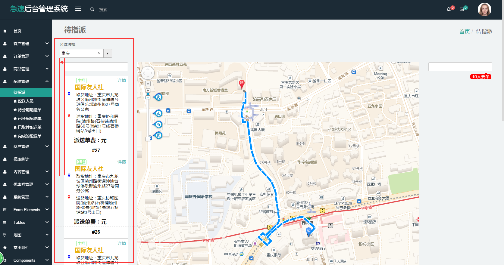 2. 能實(shí)時(shí)指派在線且距離較近配送員上門取件并配送;