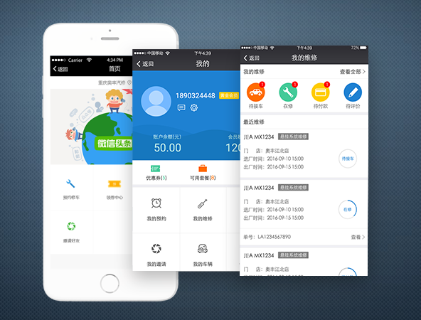 該微信端同時(shí)面向車主和維修廠:車主可通過微信端進(jìn)行預(yù)約、查詢維修進(jìn)度、查詢會(huì)員余額、接收保養(yǎng)提醒等;維修廠可以使用微信進(jìn)行活動(dòng)營(yíng)銷、客戶轉(zhuǎn)介紹,增加新用戶。微信端維修流程和用戶消費(fèi)實(shí)現(xiàn)了透明化的改進(jìn),同時(shí)微信自助服務(wù)的啟用,節(jié)省了客戶寶貴時(shí)間,同時(shí)也可幫助維修廠增強(qiáng)用戶粘性。